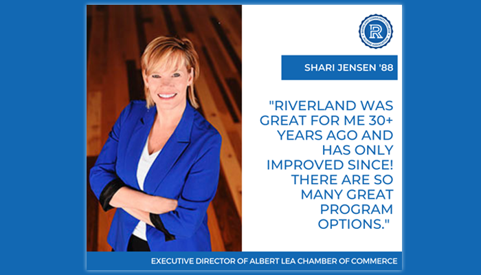 After moving away from the area, Shari returned to become Executive Director at the Albert Lea Chamber of Commerce. She believes Riverland is the answer — whether you're sure of your path or still figuring it out.