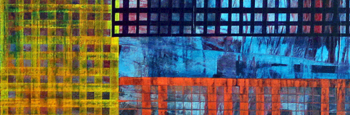 Adam McCauley's paintings successfully manage to balance the rigidity of the grid with a freewheeling indulgence in color, texture and painterly gesture. Like Kitzhaber, part of his inspiration is the prevalence of the grid in our increasingly urban environment. The works convey specific lights, moods and expressions that can be read as both lyrical and metaphorical. He has received a B.F.A in Studio Arts and an M.A. in Art History both from the University of Wisconsin Superior. He exhibits his art locally and regionally and has participated in several solo and group exhibitions, primarily in Northern Minnesota and Wisconsin. He has received an Emerging Artist and a Career Development Grant from the Arrowhead Regional Arts Council.